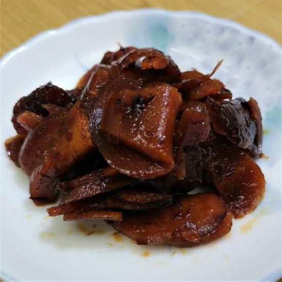 3、長芋甘口醤油漬け:女性に大人気 あと引く秘密は大葉としその実、そして良寛醤油。